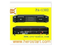 Product Description Model PA-1302 8Ω Stereo Power 2× 1300W 4Ω Stereo Power 2× 2200W 8Ω Bridged Monon? Power 4400W 4Ω Bridged Monon? Power 5200W Frequency response 20Hz-25kHz ± 0.5dB THD+N(Rated Power, 4Ω /kHz)% < 0.1% Signal Noise Ration(dB) >110dB Input Sensitivity 20K Ohm Balanced/10K Ohm Unbalanced Output Connectors Speakon Connectors(NEUTRIK) Power Requirement 200-240V/50-60Hz Airframe Dimension 483× 377× 88mm Package dimensions 575× 565× 145mm Net Weight 12.5kg Gross weight 14.5kg APPLICATIONS Club installations Live performances Theater installations FEATURE Light weight High efficiency SmaIl size, 2U height Best performance in LF Clear and attractive sound