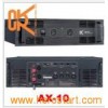 Product Description AX-Series are 2 channels post power amplifiers which adopt excellent round-transformer and high efficiency amplifier output circuit. No matter considering from sound quality or power handling, it meets the needs of all kinds of loudspeakers. With good radiating system, it can work safely for a long time. AX-Series are of high performance in its stability, ultra low noise, complete protection against DC, overheating, short circuit, clipping, distortion and so on. APPLICATIONS Club installations Live performances Theater installations FEATURE Good transient response High reliability, high durable Superior sonic performance Adopt advanced protection circuits Model AX-10 8Ω Stereo Power 1000W× 2 4Ω Stereo Power 1600W× 2 8Ω Bridged Monon 3200W 4Ω Bridged Monon 4300W Frequency response 20Hz-25kHz ± 0.5dB THD+N(Rated Power, 4Ω /kHz)% 0.03%@1kHz Signal Noise Ration(dB) 102dB Input Impedance 22K Ohm Balanced/11K Ohm Unbalanced Power Requirement 200-240V/50-60Hz Input Sensitivity 1V/1.5V Airframe Dimension 483× 481× 133mm Package dimensions 570× 565× 210mm Net Weight 34.5kg Gross weight 37.5kg