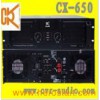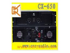 Product Description Type CX-650 8Ω Stereo Power 650W 4Ω Stereo Power 975W 8Ω Bridged Monon 1950W 4Ω Bridged Monon Frequency response 20Hz-20kHz THD+N(Rated Power, 4Ω/kHz)% 0.05% Signal Noise Ration(dB) 80dB Input Impedance 20KΩbalance/10KΩunbalance Input Sensitivity 0.775V/1V/1.4V Slew Rate 20V/μs Dampling factor(8 ohm 1k) 200 Gain 39dB Output Topology 3-tier Class H Amplifier Protection DC/Short/Temp/VHF/Limit/Softstar Input Connectors XLR/TRS Output Connectors Speakon &touch-proof binding posts Power Requirement 220V/50Hz ± 10% Dimensions 483× 490× 133mm Package dimesions 620× 585× 210mm Net Weight 29Kg Gross weight 33Kg