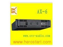 Product Description Model AX-6 8Ω Stereo Power 600W× 2 4Ω Stereo Power 900W× 2 8Ω Bridged Monon 1800W 4Ω Bridged Monon 2580W Frequency response 20Hz-25kHz ± 0.5dB THD+N(Rated Power, 4Ω/kHz)% 0.03%@1kHz Signal Noise Ration(dB) 101dB Input Impedance 22K Ohm Balanced/11K Ohm Unbalanced Power Requirement 200-240V/50-60Hz Input Sensitivity 1V/1.5V Airframe Dimension 483× 481× 88mm Package dimensions 570× 565× 160mm Net Weight 26.5kg Gross weight 28.5kg APPLICATIONS Club installations Live performances Theater installations FEATURE Good transient response High reliability, high durable Superior sonic performance Adopt advanced protection circuits