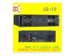 Product Description APPLICATIONS Club installations Live performances Theater installations FEATURE Good transient response High reliability, high durable Superior sonic performance Adopt advanced protection circuits Model AX-10 8Ω Stereo Power 1000W× 2 4Ω Stereo Power 1600W× 2 8Ω Bridged Monon 3200W 4Ω Bridged Monon 4300W Frequency response 20Hz-25kHz ± 0.5dB THD+N(Rated Power, 4Ω /kHz)% 0.03%@1kHz Signal Noise Ration(dB) 102dB Input Impedance 22K Ohm Balanced/11K Ohm Unbalanced Power Requirement 200-240V/50-60Hz Input Sensitivity 1V/1.5V Airframe Dimension 483× 481× 133mm Package dimensions 570× 565× 210mm Net Weight 34.5kg Gross weight 37.5kg