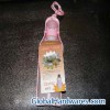 The pet feeding bottle is useful for feeding dogs with waterThe bottle is made of PP materialThis water feeding bottle is secured in a protective hard bottle and is handy and portableThere is a rope attaching on the top of the bottle making it easy for carriage