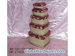 Product Specifications: Material:imitation leather &cardbord. Size: 25*24*14CM, 22*21*12CM, 19*18*10CM, 16*15*8CM, 13*12*6CM. Packing case: 12set/Ctn. Ctn measurement: 51.5*49*44.5cm, Kg:14g, Ng:13g. Product Size: 25*24*14CM,22*21*12CM,19*18*10CM,16*15*8CM,13*12*6CM FOB Port: shenzhen CN Terms of Payment: tt,or L/C at sight