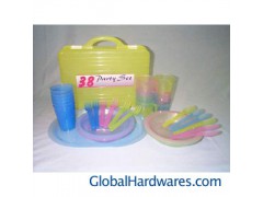 44 pcs plastic picnic set, including 6 spoon, 6 fork, 6 knife, 6 mug, 6 tumbler, 6 plate, 6 bowl, 7 tray and 1 picnic box