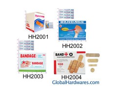 Features:1) Product: PVC ventilated composite bandages2) Specifications: a) 72mm x 19mm / 76mm x 19mm 20pcs b) 55mm x 19mm 20pcs c) 40mm x 10mm 50pcs d) Round diameter of 22mm 10pcs3) Relative items: HH2001, HH2002, HH2003Packing:100pcs/box, 144boxes/ctnCarton dimensions: 55.5 x 33.5 x 31.5cm