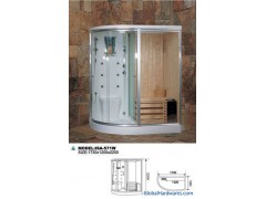 Sanitary Ware, Steam Room ISA-571W1) Dimensions:1730*1200*2200mm Volume: 2.98 cbm Glass packing size: 1980*810*160mm Basin packing size: 1850*1300*330mm Back panel & glass size: 2000*1250*450mm Back panel & furnace size: 2000*930*430mm N.W: 172kgs G.W: 223kgs Quantity per 20' GP : 9pcs Quantity per 40' GP : 19pcs Quantity per 40' HQ : 23pcs2) Material: Acrylic tray with stainless steel shelf Unique Aluminumn frame Tempered glass door Product DescriptionSanitary Ware, Steam Room ISA-571WCommodity Name:Luxury Sauna RoomFeatures and functions:1) 3kw steamer2) Control panel: Time/temperature setting and FM radio3) Exhaust fan 1pcs4) Top lamp 1pcs5) Accupuncture jet 6pcs6) Water accessories: Top shower 1pcs Cold /hot water switch system 1set Bathing function switch (shower,jet)1pcs Flexible 8 functions hand shower 1pcs Drainage 1pcs7) Shelf for shampoo and towel 1set8) Seat 1pcs9) Mirror 1pcs10)Dry sauna: Control panel, Thermometer Wooden Stool, Furnace, Sandglass calculagraph Spoon, Bucket, Mine stoneOptional function:Indoor television systemProduct Origin: ChinaBrand Name: IsabelleCertificates: ISO, CEPrice Terms: FOB, EXW, CIF, CFRPayment: L/C, T/TSupply Ability: 8000 pcs/yearMinimum Order:Delivery Time: 2 weeksPacking: Plastics Foam, Cartons, Wood crate