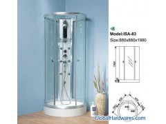 Sanitary Ware, Shower Room ISA-831) Dimensions: 880x880x1980mm Volume: 0.64cbm Glass door's Packing size: 1925*630*210mm Panel's packing size: 1875*285*270mm Tray's Packing size: 920*920*300mm N.W: 65kgs G.W: 80lkgs Quantity per 20' GP : 42pcs Quantity per 40' GP : 89pcs Quantity per 40' HQ : 105pcs2)Material: Acrylic sheet,Tempered glassProduct DescriptionSanitary Ware, Shower Room ISA-83Commodity Name:Integrated Shower RoomFeatures and functions:1) Acrylic base tray(bathtub)2) 5-6mm tempered glass enclosure3) Stainless steel shelf and screw4) Unique adjustable Aluminumn frame5) Self flowing drainer6) Luminous handle7) Removable bearing block8) Shower panel: Top shower 1pcs Hand shower 1pcs Acupuncture jet 6pcs Hot and cold water switch Control switch (shower or jet)Brand Name: IsabelleCertificates : ISO, CEPrice Terms: FOB, EXW, CFR, CIFPayment: L/C, T/TSupply Ability: 37200 pcs/yearMinimum Order:Delivery Time:2 weeksPacking: Plastics Foam, Cartons, Wood crate