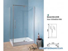 Sanitary Ware, Shower Room ISA-243B1) Dimensions: 1200x800x1990mm Volume: 0.4cbm Glass door's Packing size: 1950*810*150mm Tray's Packing size: 1220*820*160mm N.W: 60kgs G.W: 68kgs Quantity per 20' GP : 68pcs Quantity per 40' GP : 143pcs Quantity per 40' HQ : 168pcs2)Material: Acrylic sheet,Tempered glassProduct DescriptionSanitary Ware, Shower Room ISA-243BCommodity Name:Classic Shower RoomFeatures and functions:1) Acrylic base tray(bathtub)2) 5-6mm tempered glass enclosure3) Stainless steel shelf and screw4) Unique adjustable Aluminumn frame5) Self flowing drainer6) Luminous handleProduct Origin:ChinaBrand Name: IsabelleCertificates : ISO, CEPrice Terms: FOB, EXW, CFR, CIFPayment: L/C, T/TSupply Ability: 59500 pcs/yearMinimum Order:Delivery Time: 2 weeksPacking: Plastics Foam,Cartons, Wood crate