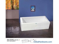 Sanitary Ware, Massage Bathtub ISA-1701PGCommodity Name:Elegant buthtubComponents:1) Dimensions: 1700*750*480mm Volume: 0.9cbm Packing size: 1800*850*550mm N.W: 65kgs G.W: 90kgs Quantity per 20'GP: 31pcs Quantity per 40'GP: 63pcs Quantity per 40'HQ: 76pcs2) Material: Acrylic sheetFeatures and functions:1) Water pump 1HP 2) Air switch starting system3) Water accessories: Pillow 1pcs Hot and cold water inlet system 8 functions portable shower Water taps Water force switch Drainer4) Earth leakage protector 5) Surfing massage system6) Voltage: 220V/110V/240V Frequency: 50Hz/60Hz Optional function:1.Television system(with DVD and VCD interface)2.Computerized control system3.Bubble massage system4.Water thermostat5.Submerged lamplightProduct Origin: ChinaBrand Name: IsabelleCertificates: ISO, CEPrice Terms: FOB, EXW, CIF, CFRPayment: L/C, T/TSupply Ability: 26500 pcs/yearMinimum Order:Delivery Time: 2 weeksPacking: Plastics Foam, Cartons, wood crate