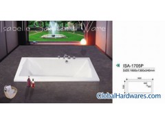 Sanitary Ware, Massage Bathtub ISA-1705PCommodity Name:Delicacy buthtub 1) Dimensions: 1800*1300*540mm Volume: 1.5cbm Packing size: 1850*1450*600mm N.W: 50kg G.W: 80kg Quantity per 20' GP: 19pcs Quantity per 40' GP: 38pcs Quantity per 40' HQ: 45pcs2) Material: Acrylic sheetFeatures and functions:Empty bathtub with water accessoriesProduct Origin: ChinaBrand Name: IsabelleCertificates: ISO, CEPrice Terms: FOB, EXW, CIF, CFRPayment: L/C, T/TSupply Ability: 16800 pcs/yearMinimum Order:Delivery Time: 2 weeksPacking: Plastics Foam, Cartons, wood crate