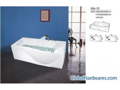 Sanitary Ware, Massage Bathtub ISA-12Commodity Name:Elegant buthtubComponents:1)Dimensions: 1500*830*620mm 1700*830*620mm Volume: 1.07/1.31cbm Packing size: 1600*900*740mm 1800*980*740mm N.W: 52/58kg G.W: 82/95kg Quantity per 20' GP: 26/21pcs Quantity per 40' GP: 53/44pcs Quantity per 40' HQ: 63/51pcs2)Material: Acrylic sheetFeatures and functions:1) 1HP water pump 1pcs 2) Air switch starting system 3) Water accessories: Top shower 1pcs Cold /hot water switch system 1set Bathing function switch(shower,jet)1pcs Flexible 8 functions hand shower 1pcs Drainage 1pcs4) Earth leakage protector 5) Voltage:220v/110v/240v Frequency:50Hz/60Hz 6) Surfing massage system Optional function:1.Television system(with DVD and VCD interface)2.Computerized control system3.Bubble massage system4.Water thermostat5.Submerged lamplightProduct Origin: ChinaBrand Name: IsabelleCertificates: ISO, CEPrice Terms: FOB, EXW, CIF, CFRPayment: L/C, T/TSupply Ability:8400 pcs/yearMinimum Order:Delivery Time:2 weeksPacking: Plastics Foam, Cartons, Wood crate