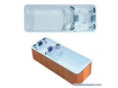 SKT339A Model: 339ASize 5850x22303x1260mm Ozonizer 2pcsMaterial Acrylic(FiberglassReinforcement) Spa Light(LED) 3pcsLounge 2person Filtration System 2setsSeats 2person Heater(3KW&5KW/220V) 2pcCapacity 14.9CBM Computer Control Panel 2pcWeight 1200kg Power switch & Conneting Box 2setTotal Jets 78pcs Stainless steel stand 1pcSpa"L" Shape Nozzle 66pcs Wooden skirt/wood plasticComposites Skirt 1setHydro Massage Jets 12pcsMassage pump 6cs Radio 2pcFiltration pump 1pc Speaker 4pcs