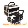 High quality make up case with 2 pullout trays and a large mirror also used as a lid .