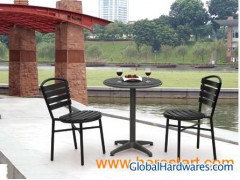 Aluminum Ps Wood furniture Aluminium PS wood tea table Dimension: DIA60x72cm-DIA80x72cm Packing: : L61XW61XH12CM/pc into carton NW/GW: 5.8/6.6kg per pc a carton Container QTY: 20': 655pcs 40': 1311pcs HQ: 1501pcs Material: Aluminum tubeDIA60x1.2mm and plastic(PS)slat W40x15mm 13pcs, 300x300 steel supporter, 580x580 foot Model: TA-7017 Aluminium PS wood chair Dimension: W42*D55*H80cm Packing: : L43xW62xH235CM/11PC per stack NW: 3.6kg/pc Container QTY: 20': 522pcs 40': 1045pcs HQ: 1235pcs Material: Aluminum tube38*17*1.2mm and plastic(PS)slat W50x15mm 10pcs Model: TA-7019