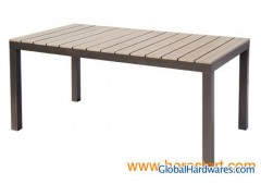 Aluminium PS wood table Dimension: 160X90XH75cm Packing: : 165× 95× 12cm/1PC per carton NW/GW: 21.3/23.6kgs per PC Container QTY: 20': 158PCS 40': 312PCS 40'HQ: 340PCS Material: Aluminum tube 60x30x1.2mm 60x60x1.2 and plastic(PS) panel W96xT15mm 16PCS TA-7011 Aluminium PS wood chair Dimension: W56*D58*H84cm Packing: L105× W57× H235CM/22PC per stack NW: 5.3kg/PC Container QTY: 20': 616PCS 40': 1232PCS Material: Aluminum tu25*25*1.5mm 38*14*1.2mm and plastic(PS)slat W40x15mm 17PCS Model: TA-7012 Aluminium PS wood lounge Dimension: W110*D58*H84cm Packing: : L112× W85× H235CM/22PC per stack NW: 11.5kg/PC Container QTY: 20': 308PCS 40': 616PCS Material: Aluminum tube25*25*1.5mm 38*14*1.2mm and plastic(PS)slat W40x15mm 40PCS Model: TA-7013