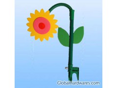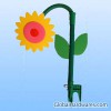 1.Insert the Fun-flower into the ground by it's spike, Connect the hose to the water supply 2.Press the Fun-flower down until the hose touches the ground, Then turn the water on slowly 3. The Fun-flower jerks back and forth, spraying everything of up to 10m around , depending on the water pressure 4. The flower sprinkler with two leaves