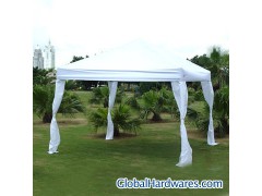 1) Size: 10' x 10' (3 x 3m)2) Frame: powder coated steel tube w/patented, pull pin slider bracket and leg bracket3) Fabric: 300D oxford with PU coating or aluminum backing