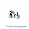 Robe hook is made of zinc alloy and chrome-plated for hanging clothes or other articles.