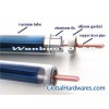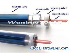 A heat pipe is a sealed copper pipe containing a small quantity of volatile liquid with no air. Heat pipe vacuum tube consists of the glass vacuum tube and a copper heat pipe which is fixed by aluminum flake and silicon plug. When copper heat pipe to be heated then it will conduct heat to its tip (condenser) which is plugged into the header pipe (inside of manifold). Water run through the header pipe so that heat is transferred from the heat pipe condenser to the water. Solar collector’s conversion efficiency is at 72% in full bright sunlight.