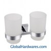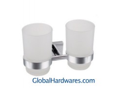 Double tumbler holder with glass is made of zinc alloy and chrome-plated for putting cups.
