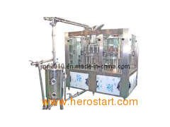 Juice bottling machine RCGF series JR-RCGF series 3in1 unit combines rinsing, filling and capping with complete automation, suitable for non-carbonated dirnk. Conveyor height is adjustable, and the whole process is set up with alarm device in case the bottle is jammed, lacking, missing and over loading. With complete system highly automatic, mechanically sound, and very easy to operate, it meets the food hygiene standards with optional capacity from 2000b/h to 30000b/h. Model: JR-RCGF14124 Rinsing: 14heads, filling: 12heads, capping: 4heads Capacity: 2000--3500b/h (500ml) Rinsing water: Aseptic water Filling temperature: >85 degrees Bottle shape: Round, square, oblate, etc. Bottle diameter: Φ 50--100mm Bottle height: 150--310mm Power: 2kw Dimension: 2000× 1800× 2200mm(L× W× H) Weight: 3000Kg. Add to Basket