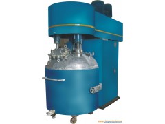 1. The machinery is for mixing, dispersion, reaction, resolution and homogenization between liquid and liquid, and between solid and liquid material. 2. The machine consist of mixer and box. Hydraulic station, vacuum pump, electricity control case, operation panel are equipment in the box; While the mixer is composed of upper frame, barrel cover, barrel, gas cylinder, oil cylinder, motor, disperser, mixer and transmission system. 3. High speed disperser and disc mixer have electrical speed regulator to control the speed. 4. Function and features 1)Soft sealing is adopted between barrel and barrel cover to make sure the operation is available under vacuum condition; 2)While the mixer operates under the vacuum condition, its auto-control up and down travel also runs at the same time. 3)Material barrel is equipped with the cooling sleeve, which can be heated by circular heating with hot oil and hot water or executed cold oil hand cold water circulation. Temperature meter and vacuum pressure meter are set up on the barrel cover. 4)In the barrel, high-speed disperser is equipped to achieve strong cutting and mixing 5)Disk mixer and high-speed disperser in the barrel can have speed regulation through speed regulator, and can choose different speeds as per different processing and viscosities.