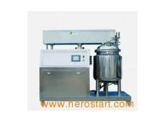 Features: The pot cover takes the form of auto-move-up-and-down. The material in water pot and oil pot is sucked into emulsifying pot in vacuum by transmission pipes. The emulsifying pot is designed to be titted over in case to dump products. The material can be heated by electrical heater with help of heat-conductive medium it can also heated bygasi. The heat temp, can be set and automatically controlled. Material cooling is available. It is easy to operate. There is temperature- keeping sheet betweer inner and out sheath Different stirring modes can be used simultaneously or individually. All the processes of crushing, emulsifying, mixing, stirring and dispersing can be accomplished within a short time. The area touching working material is made of stainless steel(Commonly used 304, medical 316L ), With innter surface polished, the vacuum stirring equipment meets the need of hygiene and are manufactured in accordance with GMP standard. It is best for the production of ointment, cream, etc. Working Process: The materials are heated and mixed in water pot and oil pot to be fully reacted. Sucked into emulsifying pot by vacuum pump, the materials are stirred by both the center blade and side scraper, which works on the wall. In the process of blade-stirring, the materials are continuously crushed, pressed, folded. Then, the materials are sent to the cut-off mixing until where they are finally crushed into small pellets of 200μ M~2μ M. Besides, because of the vacuum in emulsifying pot, the bubbles generated during stirring and mixing process are sucked out from material.
