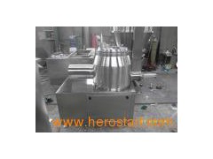 Principle The powder raw material and adhensive in a cylinder are mixed fully at the bottom to become a humid soft material. Then it is cut through high-speed crusher and become uniform granules. Features The machine adapts horizontal cylinder structure. Its structure is reasonable; Use air filled seal shaft to drive. When washing it can be changed to water; Use fluidization to Granulate and the granule is near ball. Its flow is good; Compared the traditional process, 25%of adhesive can be reduced and the daying time can be shorted; The time of mixing in dry is 2 minutes and the time of granulating is 1~4 minutes. Compared with the traditional process, 4-5 times of efficiency is raised; In the same sealed container, dry mixing, humidity mixing and granulating can be finished. It is in conformity with the requirements of GMP; The whole operation has strict safe and protective measures