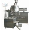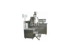 Applications: This is equipment for tablet production in pharmaceutical industry and can prepare ideal particle raw material for medicine. The particles produced by this equipment have the advantages of perfect sphergocyte, good fluency and being homogeneous. Besides, they also have excellent quality, smooth surface, better hardness and crumbliness and liberation ability. The equipment has optimized design, fine workmanship and carefully designed interlocking mechanism. In addition, it is provided with cleaning function. Production cost can be saved greatly by using this equipment. Features: 1) Conical material groove: material can be mixed uniformly 2) Pneumatic automatic discharge: sealed and reliable 3) Pneumatic pot cover lifting: easy operation 4) Frequency inverter adjustable speed of cutter: the granule diameter can be controlled easily 5) Manually controlled rotational speed: you can try to find out technological parameters for experiments 6) Current display: measuring power consumption and monitoring granulating process 7) Input set value through touch-gram control: the quality of every bath is stable and uniform 8) Gas filled sealing of rotating shaft: prevents rotating shaft from being bonded by dust 9) Water-spraying cleaning of rotating shaft: easy cleaning and short cleaning time 10) Cooling of interlayer jacket of material groove: improves quality of granule 11) Appropriate height if discharge outlet: it can be used together with drying equipment