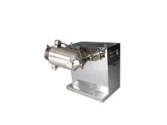 The mixer ( blender ) is widely used for the mixing of powder materials by pharmacy, chemicals and foodstuff industries. Three-dimensional mixer: Characteristics With its unique three-dimensional swing, parallel moving and rolling methods, the mixer can generate a strong pulse movement to push forward and to mix target materials continuously. The excellent mixing effects are the result of its changeable vortex movement that possesses the energy grads inside. It also has the merits of smooth running, low noise, high loading quantity and short mixing time as well. Working method The machine is composed of base, frequency change motor, main axis, rotor and cylinder, etc. The cylinder container will carry on parallel moving and rolling under the driving of main axis, thus to push the material moving in the direction of circly, radical and axially, achieving uniform mixing of different varieties of material.