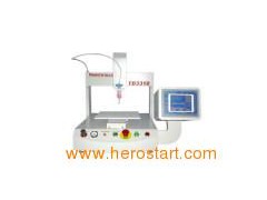Three axes automatic dispensers TD3310 X, Y, Z three axis adjustable high precision automatic dispensers with program control on touch screen panel or PC program input. Introduction: Three axes table automatic dispenser, which is universal electro-equipment, widely used in the fields of electro component manufacture, PCB assembly, wiring making, IC package, exact apparatus, biomedicine, light industry, packing, food and so on. TD4310D integrates movement and dispenser control technology and have the advantage of easy operation, stable performance and economical price. Structure: Three axes table automatic dispensers have the compact structure and beautiful exterior. They assist of Y axis control panel, X and Z axis. It is convenient to control the process of dispenser with the touching-screen controller. Remark: 1. Three axes control for high speed and excellent dispenser and movement. 2. External Chinese/English touch screen controller easily to adjust exactly to improve efficiency, convenient and reliable. 3. The economic price and high quality 4. Effective scope: X axis 300mm (move to right or left) Y axis 300mm (move forward or backward) Z axis 100mm (move up or down) 5. The quickest speed: X axis 800mm/s Y axis, Y2axis 800mm/s Z axis 300mm/s 6. Repeatiting accuracy: Plus-minus; 0.02mm 7. Drive method: Step motor laser & synchronous belt 8. Most bearing: Worktable 8kg, Z axis 3kg 9. Controlling method: Port to port, beeline and arc 10. Programme method: Touch screen control, PC program input 11. Program capacity: 100 programs/6000 ports 12. Power supply: AC220V 13. Air pressure: 06Kgf/Cm2 14. Dimention: L*W*H 760mm*660mm*640mm 15. Weight: About 45 Kg 16. Panel control Button for Start, reposition, sudden stop 17. Programme interface: Chinese/English 5.7 inch touch screen instructing machine.