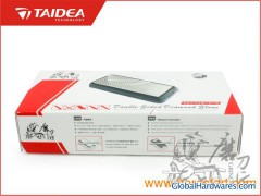 Sharpening Stone, Double-Sided Diamond,kitchen knives, chef's knives, fruit knives, scissors blade sharpening Product Features:Shapening Stone, Doubled Sided-Diamond Descrpition 1. 360 grit Diamond sharpening stone: Coarse sharpening for a blunter bladeModerate sharpening angle and moderate pressure, sharpening forward will lead to the best sharpening effect. 2. 600 grit Diamond sharpening stone: Fine honing for knife polishing and maintenance.A necessary step for the burrs elimination. sharpening approximately once a week at least is recommended. Caution: 1, Sharpening with a moderate pressure to avoid damaging the blades 2, Do not put the sharpening stone into dishwasher or water. 3, To avoid any accidents, the sharpening stone should be away from children.