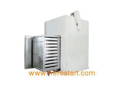 This dryer can be used in many kinds of industries. Currently, it is mainly used in aminoplastic, that is urea formaldehyde moulding compound and melamine formaldehyde moulding compound. I can also used to dry fruit and vegetable, etc. 1. Introduction 1). Compare to web dryer, this machine has the characteristics of simple mechanical drive, low failure rate, no contamination, small occupation area, low investment. It is easy to operate and clean, suitable for production of small batch and color powder. 2). Compare to hand overturning material type dryer, it reduces intensity of labor and doesn't need operators to work under high-temperature, high-humidity and irritating toxic air for long time. No fume leaking ensures good working environment. It has a reasonable wind road design, high efficiency and has the advantages of energy-saving, low noise, good operational environment. It is easy to operate and do maintenance. 2. Application 1. This is a suitable equipment for melamine plazing powder production. 2). Production of color aminoplast power (small batch, multi-variety) 3). Dry other material which moisture content is less than 25% 3. Technical parameter 1). Overall size: 1800× 1810× 3100mm (length× Width× Height) 2). Quantity of plate: 40 pieces 3). Size of plate 740/500/65mm 4). Fan delivery: 18000 m3/h. 5). Wind pressure: 304Pa 6). Motor power: 3KW 7). Weight of whole machine: 2000Kg 8). Occupation for installation: 1800× 4350mm 9). Steam consumption: 100Kg/hr. 10). Steam pressure: 0.4MPa 11). Maximum temperature of dryer: 125 centigrades;