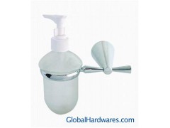 Liquid soap dispenser consists of a pedestal and a bottle for putting hair shampoo and other articles,being made of zinc alloy and plastic.