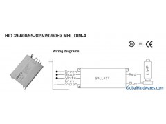Type HID 1x39/95-305V MHL DIM-AArticle Number 241001Circuit Power(Watts) 95-305Current(Amps) 0.17Power Factor ≥0.95MAX.THD(%) <10Temp.Range(℃) -25→+65Dimensions(mm)125x47x31Wiring 1