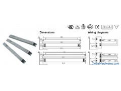 Type FL 1x24/220-240V T5 DIM-AArticle Number 211009Input Volts 50/60Hz(VAC) 220-240Circuit Power(Watts) 26.8Current(Amps) 0.12Power Factor 0.96Temp.Range(℃) -20→+60Dimensions(mm)360x30x30Wiring 1