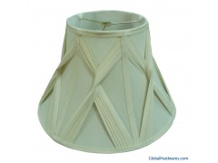 cream shantung silk across continous pleat bell, with white nylon lining, double trims on Top & Bottom, Spider + Washer, H0.5'', PB