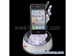 Chromatic Rotary LED Turntable Light Base with Plastic Beautiful Hand 旾t can 360 degree rotate and shift shine itself if power is available 昑he turntable will light up with different colors ?-LEDs inside with various colors 旵onvenient to use and easy to carry 旾t is poweredy 3 pcs 1.5V AA batteries(not included) 旾t can be also powered with AC adaptor 旾deal for present or display cell phones and other digital products 旵an be also decorate your home and build romantic atmosphere 旴eautiful gifts for friends or family member