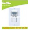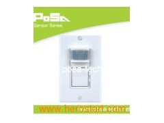 1) New, low-profile design eliminates obtrusive "scanning-device" look. 2) 180° Field-of-view provides approximately 90 square meters of coverage suitable for small offices, conference rooms, class rooms, lounges and a variety of commercial areas. 3) Convenient push-button provides manual ON/OFF/AUTO light switching at any time. 4) Optional manual adjustment for delayed-OFF time settings of 8± 2 seconds to 20± 3 minutes. Allows customized adjustments to maximize energy saving. 5) Adjustable Ambient Light Override ranges from approximately 2 foot-candles (2lux) to 1000 foot-candles (1000lux) to prevent lights from turning ON automatically during periods of ample natural light, increasing energy savings. 6) LED indicator light flashes when sensor detects motion to verify detection is active. 7) One unit can be used for either 120V or 277V lighting. 8) Fits in standard wall-box and replaces single-pole wall switch. 9) Limited Five-Year Warranty
