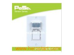 1) New, low-profile design eliminates obtrusive "scanning-device" look. 2) 180° Field-of-view provides approximately 90 square meters of coverage suitable for small offices, conference rooms, class rooms, lounges and a variety of commercial areas. 3) Convenient push-button provides manual ON/OFF/AUTO light switching at any time. 4) Optional manual adjustment for delayed-OFF time settings of 8± 2 seconds to 20± 3 minutes. Allows customized adjustments to maximize energy saving. 5) Adjustable Ambient Light Override ranges from approximately 2 foot-candles (2lux) to 1000 foot-candles (1000lux) to prevent lights from turning ON automatically during periods of ample natural light, increasing energy savings. 6) LED indicator light flashes when sensor detects motion to verify detection is active. 7) One unit can be used for either 120V or 277V lighting. 8) Fits in standard wall-box and replaces single-pole wall switch. 9) Limited Five-Year Warranty
