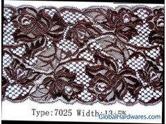 Item No: 7025Width :13cmcomposition :100% nylon it is used widly for dress ,.garments we also have other kinds of lace .if you are interested .please invite our website .or cantact me directly