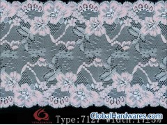 width :17cmcomposition:92% nylon and 8% spandex MOQ:3000 yards it is produced by the jacquard and compute machine . has very nice net flowers .