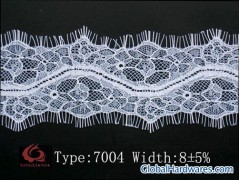 tricot lace 7004#model no:7004#width:8+5%composition:NYLON100%moq;the basis of customers'demandprice terms: FOB FUZHOU CHINApayment terms: T/T ,WESTERN UNION,L/Cpacking: BY CARTONSWe manufacturer and export all types of Lace: Elastic lace, Non-elastic lace, Eyelash lace ,Cotton lace, Tricot lace, T/C lace, lace Trimmings, lace Fabric,The product widely is suitable for the feminine clothing, the underwear, the chest measurement the nuptial dress, the children clothing, bed wrap, window blind, sock, umbrella, toy, ect. our products are top quality ,competitive price ,can be dyed different color as your request,Sincere service for long business relationship