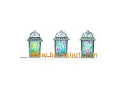 Metal & Fused glass Lantern With Solar-light 3/S Product Size: 5.30"X5.30"X9.60"inch