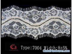 tricot lace 7004#model no:7004#width:8+5%composition:NYLON%moq;the basis of customers'demandprice terms: FOB FUZHOU CHINApayment terms: T/T ,WESTERN UNION,L/Cpacking: BY CARTONWe manufacturer and export all types of Lace: Elastic lace, Non-elastic lace, Eyelash lace ,Cotton lace, Tricot lace, T/C lace, lace Trimmings, lace Fabric,The product widely is suitable for the feminine clothing, the underwear, the chest measurement the nuptial dress, the children clothing, bed wrap, window blind, sock, umbrella, toy, ect. our products are top quality ,competitive price ,can be dyed different color as your request,Sincere service for long business relationship