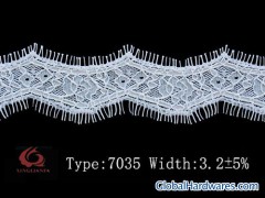 tricot lace: 7035#model no:7035#width:3.2+5%composition:NYLOY100%moq:the basis of the customers'demandprice terms: FOB FUZHOU CHINApayment terms: T/T ,WESTERN UNION,L/Cpacking: BY CORTONSWe manufacturer and export all types of Lace: Elastic lace, Non-elastic lace, Eyelash lace ,Cotton lace, Tricot lace, T/C lace, lace Trimmings, lace Fabric,The product widely is suitable for the feminine clothing, the underwear, the chest measurement the nuptial dress, the children clothing, bed wrap, window blind, sock, umbrella, toy, ect. our products are top quality ,competitive price ,can be dyed different color as your request,Sincere service for long business relationship