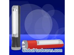 1. 1x4W fluorescent tube. 2. 6V/0.5A search light/torch. 3. Operate as a desk lamp when standing. 4. Runs on dry batteries (size "AA"x4), or other batteries. 5. Color: Orange, Black