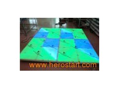 LED dance floor (size: 1M x 1M ) (RGB color ) Voltage: AC 100V / 240V 50/60Hz Light Source: 10mm * 720 RGB LEDs Power consumption: 70W Control mode: Sound active / Auto / Master&Slave / DMX512 Channel: 31 DMX channels Color: RGB color mixing LEDs quantity: RED: 240PCS BLUE: 240PCS GREEN: 240PCS It is made up by 4PCS small unit: The size of each unit - L1m * W1m, thickness are 12cm, Each unit easy to be connected, and can made up to different size floor. Use special transparent panel, toughened glass for coverage can burden 1600 KG. Waterproof rate: IP65 Anti-dusty, and anti-strike; Packing Dimensions: 1300*1300*230mm G. W: 45kgs
