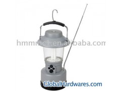 ABS casing * Silver and Black Color * FM Radio * 13W Flourescent U-tube and 3LED * Main light:210 Lumens,Night light:15Lumens Output * 6 X 1.5V“D”Dry Batteries * Main light:12h,Night light: More than 2 Weeks runtime * 12 h Fully Recharge Time * 13W U shape tube>3LED>>off switch * 12.40 inch length * Diameter: body - 6.89 inch * Weight: 855g * Packaging: Color box