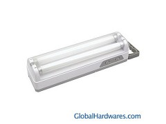 1. Rechargeable 6V, 4AH sealed lead acid battery 2. 2 x 10W fluorescent tubes 3. Emergency and automatic light-up 4. Overdischarge and overcharge protection 5. Handle and wall-mounted 6. Duration time: 3 hours for two tubes, 6 hours for one tube 7. Green LED: power indicator 8. Red LED: charge indicator 9. Product size:38x10.3x10cm